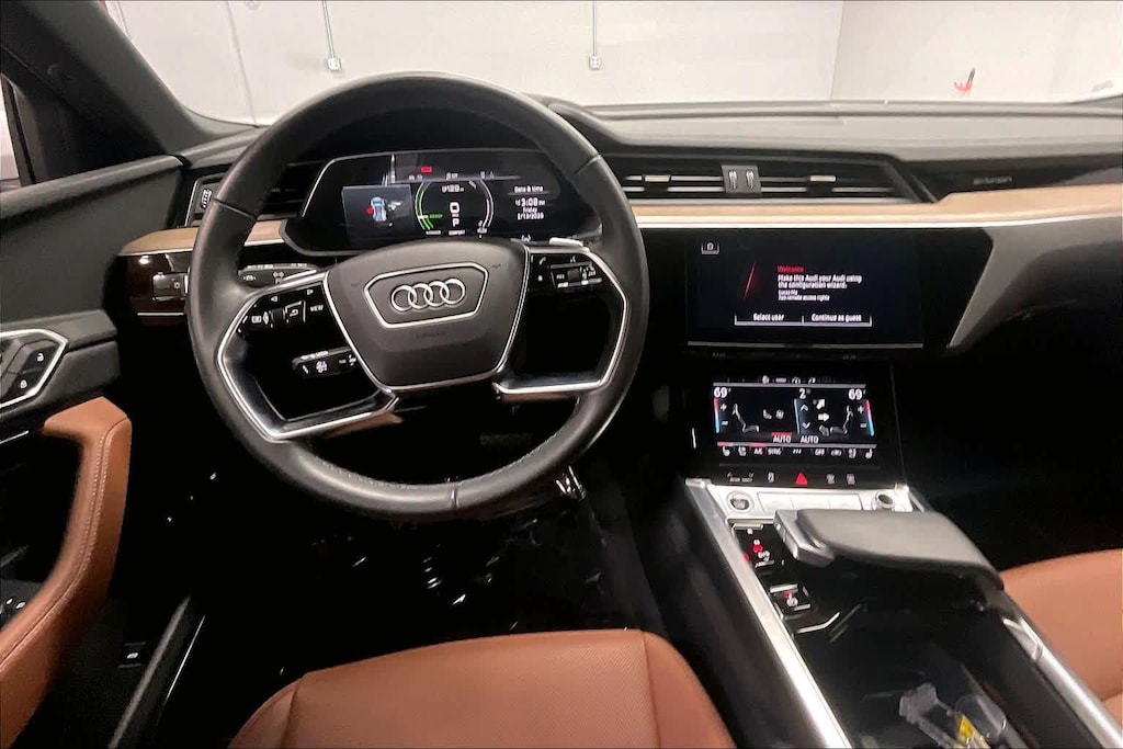 Blind Spot Monitor, Cross-Traffic Alert, Lane Keeping Assist, Child Safety Locks, Electronic Stability Control, Brake Assist, 4-Wheel ABS, Tire Pressure Monitoring System, 4-Wheel Disc Brakes Audi Premium Plus with Glacier White Metallic exterior and Okapi Brown interior features a Electric Motor. Non-Smoker vehicle