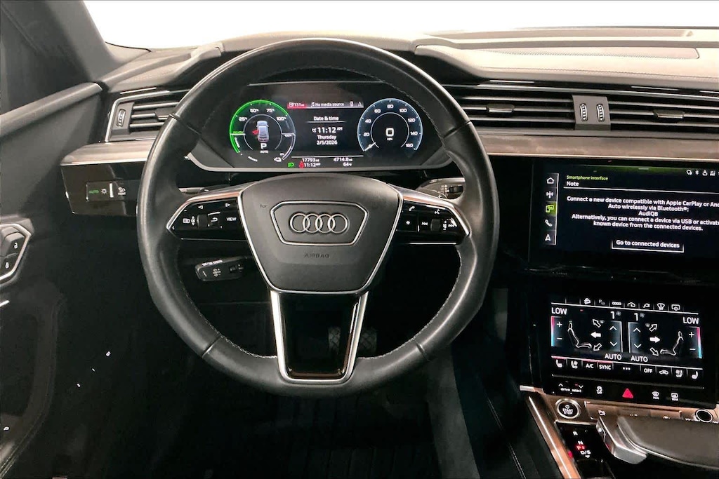 PRESTIGE PACKAGE: glass-optic controls in black w/additional alu-optic interior elements, Digital Matrix LED Headlights, Front Passenger Seat Memory, Head-Up Display, Traffic Sign Recognition, Leather Trimmed Dash/Armrest/Center Console, Bang & Olufsen Sound System w/3D Sound, Top View Camera System, virtual 360 degree view, Heated Rear Seats, Intersection Assist, LED Interior Lighting Plus Package, multicolor, Power Soft-Closing Doors, Front Passenger Power Lumbar, Wireless Phone Charging Pad, Animation for Headlights & Taillights, Single Frame Projector Lighting, Park Assist Plus, Dual Pane Acoustic Glass for Side Door Windows, Manual Sunshades for Rear Doors, BLACK OPTIC PACKAGE: High-Gloss Black Front Grille & Mask, High-Gloss Black Rear Diffuser Inlay, Wheels: 21 5-Arm Aero Structure Design, Bi-color finish, Tires: 265/45R21 108H XL All-Season, High-Gloss Black Window Surrounds, TRAILER HITCH: 4,000 lb towing capacity. Audi S line Prestige with Magnet Gray exterior and Black interior features a Electric Motor. Serviced here, Non-Smoker vehicle, Originally bought here, Full four wheel alignment, Two new front tires