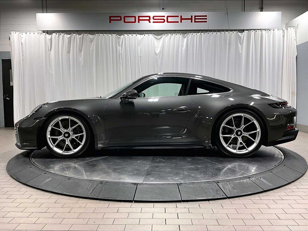 PORSCHE DYNAMIC LIGHT SYSTEM PLUS (PDLS+), CHRONO PACKAGE W/PREPARATION FOR LAP TRIGGER, 23.7 GAL. EXTENDED RANGE FUEL TANK, EXCLUSIVE DESIGN FUEL CAP. Porsche GT3 w/Touring Package with Agate Grey Metallic exterior and Black interior features a Flat 6 Cylinder Engine with 502 HP at 8400 RPM*.