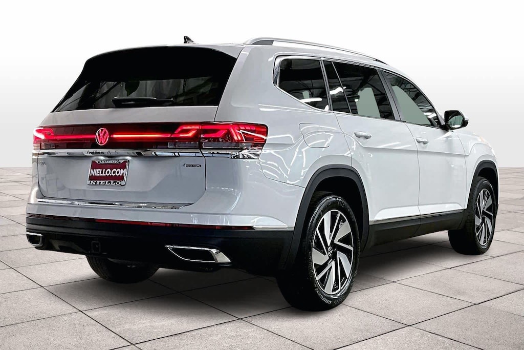 EXTERIOR - 20 alloy wheels w/ all-season tires- LED automatic headlights, Daytime Running Lights & taillights- Adaptive Front Lighting System (AFS)- Poor Weather Lights (improves visibility in inclement weather)- Front & rear light bars; illluminated front & rear Volkswagen logos- Side mirrors w/ position memory- Rain-sensing front wipers w/ heated washer nozzles- Power tilting & sliding panoramic sunroof- Roof rails- Trailer hitch (5,000 lb. towing capacity)- Climatronic® Touch three-zone automatic climate control- Rear zone climate control panel in 2nd row- Heated, leatherette-wrapped steering wheel w/ shift paddles- Heated & ventilated, power drivers seat w/ lumbar support & position memory- Heated & ventilated, power front passenger seat- 2nd-row seat: 60/40 split-folding, folds flat, slides & reclines, w/ 3rd-row access- Heated 2nd row (outboard seating positions)- 3rd-row seat: 50/50 split-folding & folds flat- Leather seating surfaces (1st row & outboard 2nd row)- Auto-dimming rearview mirror w/ HomeLink® (Smart Home App at homelink.com)- 115V AC outlet in 2nd row; USB-C ports in all three rows; 12V port in cargo area- Roll-up manual sunshades for 2nd-row windows- Multi-color adjustable ambient lighting; front entry lighting; front footwell lights