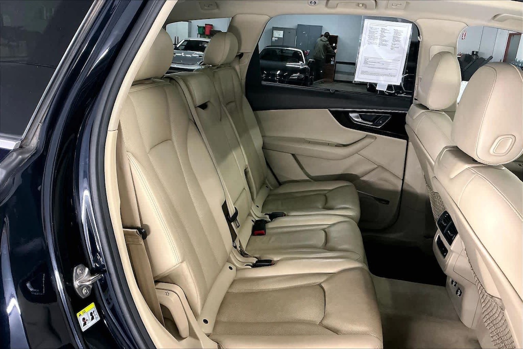 PREMIUM PLUS PACKAGE: 3D Bose Surround Sound System, LED Interior Lighting Package, door insert, door inlay, contour, instrument panel contour and door pocket LED accents, Audi Side Assist w/Pre Sense Rear, Audi Smartphone Interface, Apple CarPlay®/Android Auto®, Audi Connect PRIME & PLUS, Audi Connect CARE, limited time subscription, Audi MMI Navigation Plus w/MMI Touch, INRIX XD Traffic, Audi connect w/, Audi smartphone integration and MMI all-in-touch w/handwriting-recognition technology, Electric Tilt/Telescopic Steering Column w/Memory, Heated Auto-Dimming Power Folding Exterior Mirrors, memory, VISION PACKAGE: Full LED Headlights, LED dipped and high beams, daytime running lights, static turn signals and all-weather light, Audi Virtual Cockpit, 12.3 inch LCD fully digital instrument cluster w/1,440 x 540 pixel resolution and two visual modes: classic and infotainment, Topview Camera System, VENTILATION PACKAGE: Manual Window Shades For Rear Doors & Tailgate, Driver & Passenger Front Seats w/Ventilation, 4-way power lumbar, WHEELS: 20 10-SPOKE-STAR DESIGN BI-COLOR: Tires: 285/45R20 All-Season Run-Flat, COLD WEATHER PACKAGE: Black Rubber All-Weather Floor Mats (Set of 4), Q7 logo, Heated Rear Seats, 3-Spoke Multifunction Steering Wheel w/Paddles, Heated Q-Design, TOWING PACKAGE: 7,700 lbs towing capacity and trailer hitch. Non-Smoker vehicle Clean