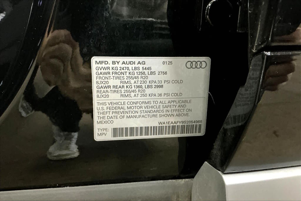 PREMIUM PLUS PACKAGE: SiriusXM w/360L, 3-month platinum plan trial subscription, Bang & Olufsen 3D Sound System, Top View Camera System, Power Adjustable Steering Column, LED Interior Lighting Plus Package, inlay illumination and color options, Power Folding Auto-Dim Exterior Mirrors w/Memory, Driver Seat Memory, Audi Virtual Cockpit Plus, Traffic Sign Recognition, Leatherette Covered Center Console & Door Armrests, WHEELS: 20 5-ARM DESIGN: Tires: 255/45R20 101H AS, AUDI BEAM-RINGS: lower door trim LED light displaying Audi logo (4 rings), Front doors only.