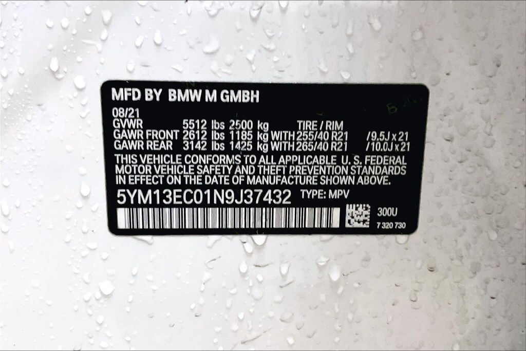 WHEELS: 21 X 9.5 FR & 21 X 10 RR V-SPOKE Bi-color jet black, style 765M, Tires: 255/40R21 Fr & 265/40R21 Rr Perf Non-RFT.