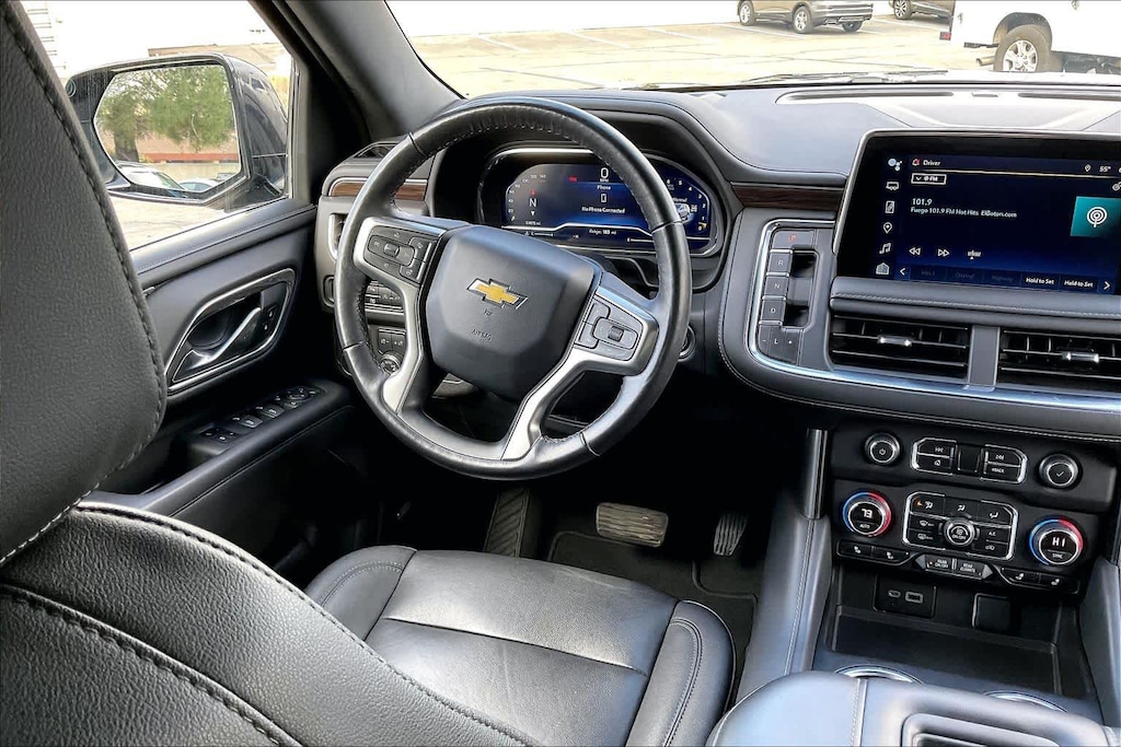 LUXURY PACKAGE includes (WPD) Driver Alert Package content, (UV2) HD Surround Vision, (UKK) Rear Pedestrian Alert, (A45) memory settings, (DXR) outside heated power-adjustable, power-folding, body-color mirrors with driver-side auto-dimming and integrated turn signal indicators, (N38) power tilt and telescopic steering column, (KI3) heated steering wheel, (KA6) second row outboard heated seats, (ATT) second row power 60/40 split-folding bench seats and (AS8) third row power 60/40 split-folding bench seats Vehicles built prior to December 6, 2021, include heated steering wheel. Certain vehicles built on or after December 6, 2021, will be forced to include (00G) Not Equipped with Heated Steering Wheel, which removes heated steering wheel. Vehicles built prior to March 14, 2022 and after, LPO, BLACK ROOF RACK CROSS RAILS (dealer-installed), SEATS, SECOND ROW BUCKET, POWER RELEASE, AUDIO SYSTEM, CHEVROLET INFOTAINMENT 3 PREMIUM SYSTEM WITH GOOGLE BUILT-IN 10.2 diagonal HD color touchscreen, includes multi-touch display, AM/FM stereo, Bluetooth® streaming audio for music and most phones; featuring wireless Android Auto® and Apple CarPlay® capability for compatible phones, advanced voice recognition, in-vehicle apps, personalized profiles for infotainment and vehicle settings (STD), STEERING WHEEL, HEATED Vehicles built prior to December 6, 2021 and after March 27, 2022, include heated steering wheel. Certain vehicles built on or after December 6, 2021 through March 27, 2022, will be forced to include (00G) Not Equipped with Heated Steering Wheel, which removes heated steering wheel. See dealer for details or the window label for the features on a specific vehicle.), ENGINE, 5.3L ECOTEC3 V8 with Dynamic Fuel Management, Direct Injection and Variable Valve Timing, includes aluminum block construction (355 hp [265 kW] @ 5600 rpm, 383 lb-ft of torque [518 Nm] @ 4100 rpm) (STD), TRANSMISSION, 10-SPEED AUTOMATIC electronically controlled with overdrive, includes Traction Select System including tow/haul (Standard with (L84) 5.3L EcoTec3 V8 engine only.) (STD), DRIVER ALERT PACKAGE includes (UKC) Lane Change Alert with Side Blind Zone Alert and (UFG) Rear Cross Traffic Alert. Non-Smoker vehicle, Full detail completed inside and out, Books and Keys, Great service record history / well maintained, 1 owner trade
