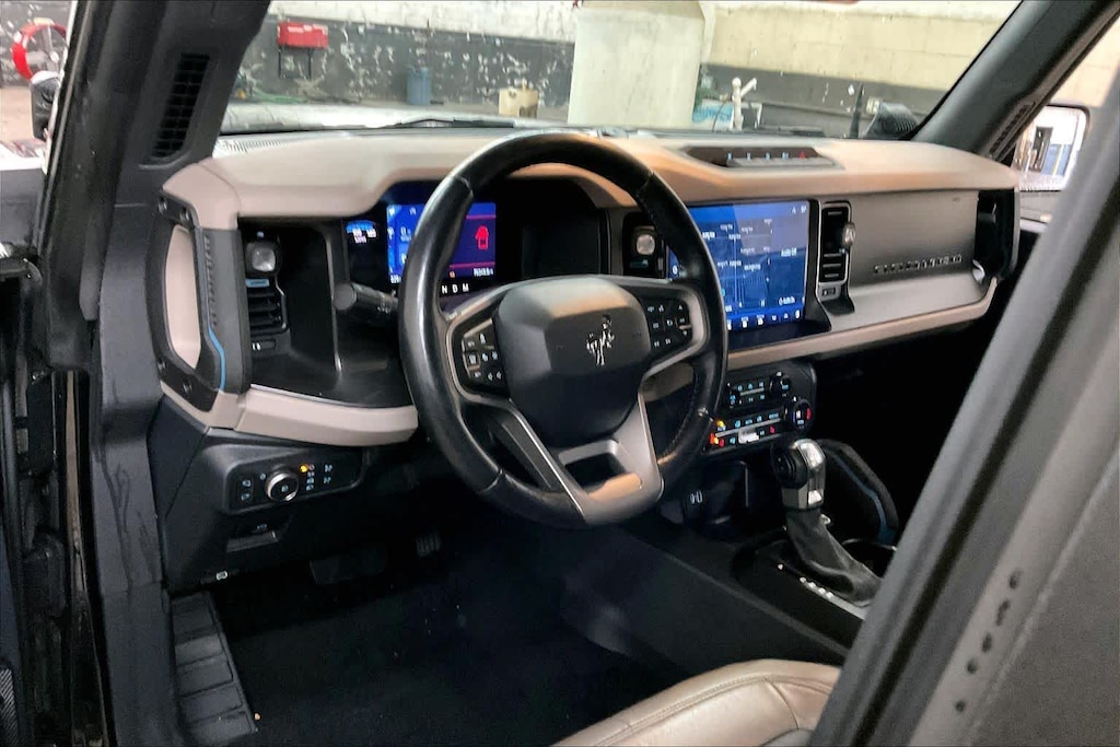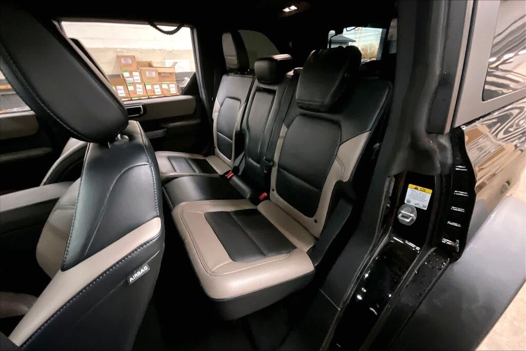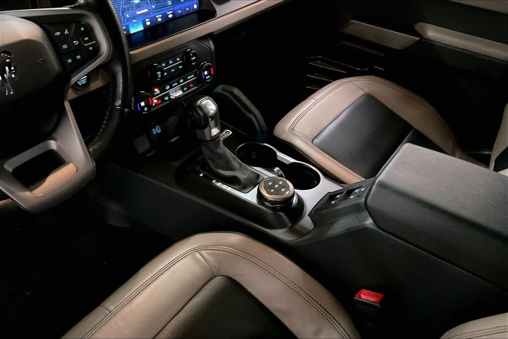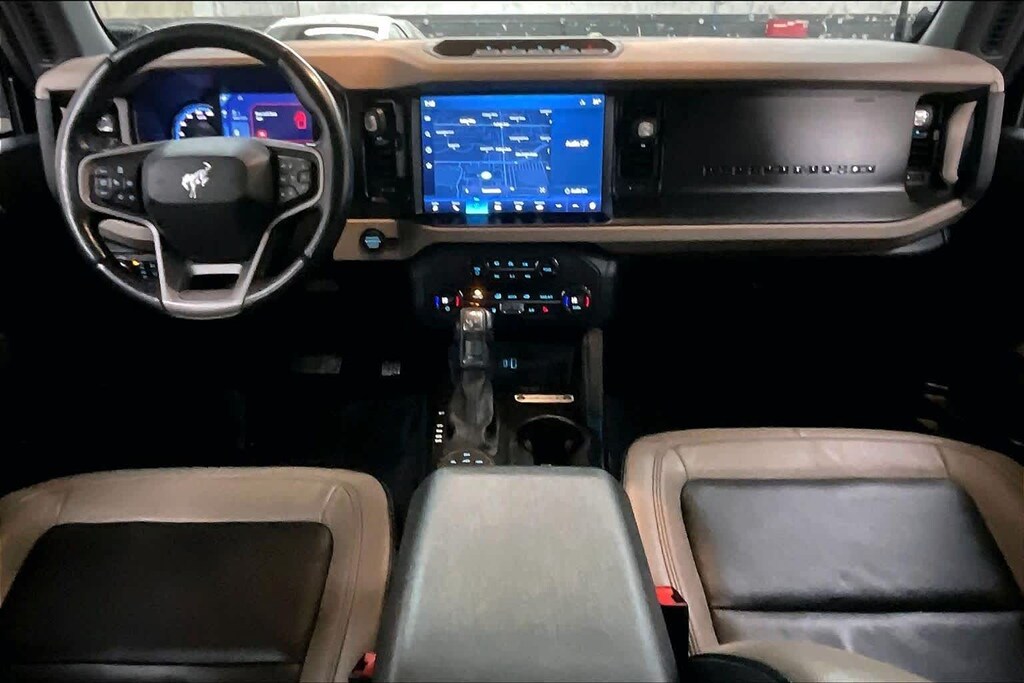 EQUIPMENT GROUP 354A LUX PACKAGE Connected Built-In Navigation, 3 years of service, pinch-to-zoom capability, live traffic, predictive destinations and route guidance, Navigation service requires SYNC4 and FordPass Connect, complimentary connect service and the FordPass app (see FordPass Terms for details), Customer receives a complimentary 3-year trial of navigation services when an eligible vehicle is added to a members FordPass account, Trial period begins w/new vehicle warranty start date, At the end of the complimentary period, access to connected navigation services will be discontinued, Connected service and features depend on compatible AT&T network availability, Evolving technology/cellular networks/vehicle capability may limit functionality and prevent operation of connected, MEDIUM SANDSTONE W/BLACK, HEATED LEATHER-TRIMMED/VINYL BUCKET SEATS 10-way power driver seat, 8-way front passenger seat and second row armrest w/2 beverage holders, TRANSMISSION: 10-SPEED AUTOMATIC trail control, trail turn assist and trail one-pedal driving (STD).
