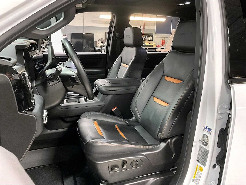 Leather Seats, 4x4, Heated Driver Seat, Heated Rear Seat, Cooled Driver Seat. GMC AT4 with Summit White exterior and Jet Black with Kalahari accents interior features a 8 Cylinder Engine with 470 HP at 2800 RPM*.
