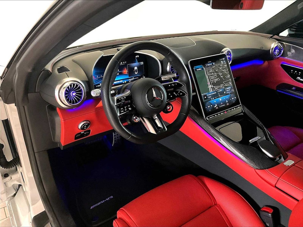 Blind Spot Monitor, Cross-Traffic Alert, Lane Keeping Assist, Rollover Protection System, Electronic Stability Control, Brake Assist, 4-Wheel ABS, Tire Pressure Monitoring System, 4-Wheel Disc Brakes Mercedes-Benz AMG® SL 55 with MANUFAKTUR Moonlight White Metallic exterior and Red Pepper/Black interior features a 8 Cylinder Engine with 469 HP at 5500 RPM*. Non-Smoker vehicle