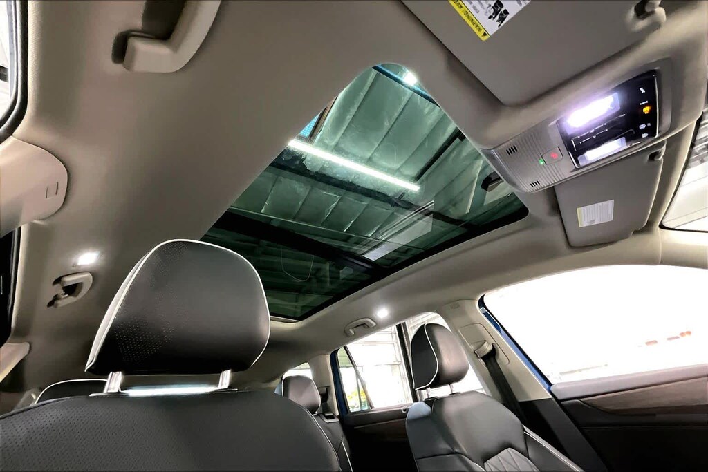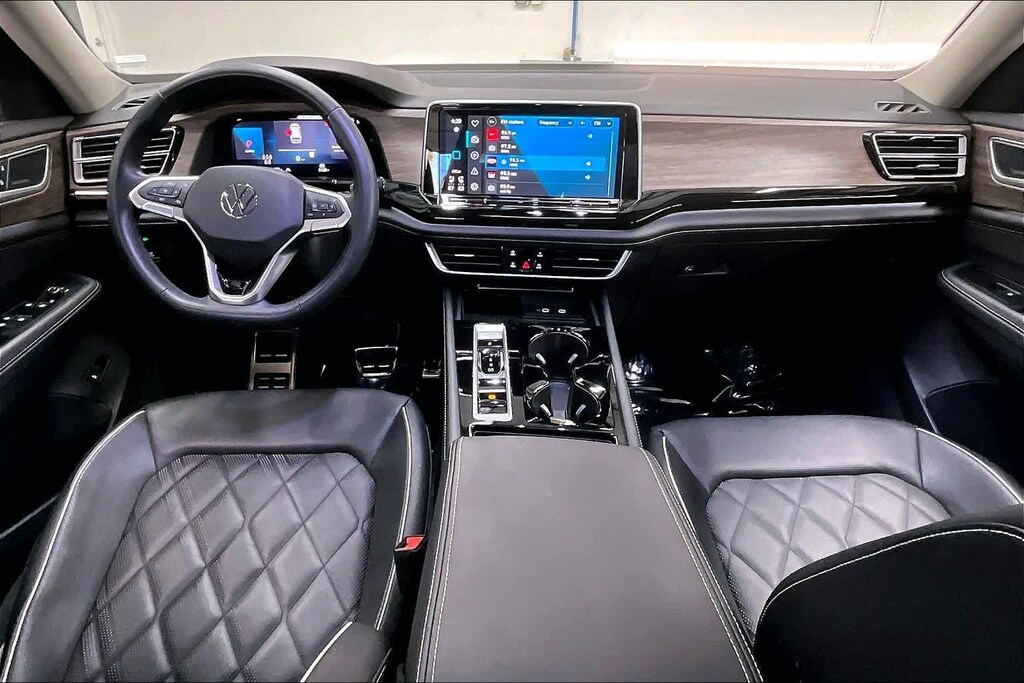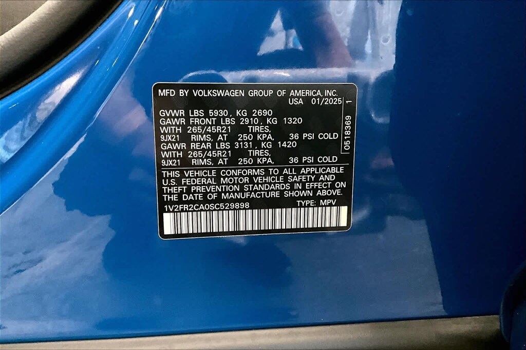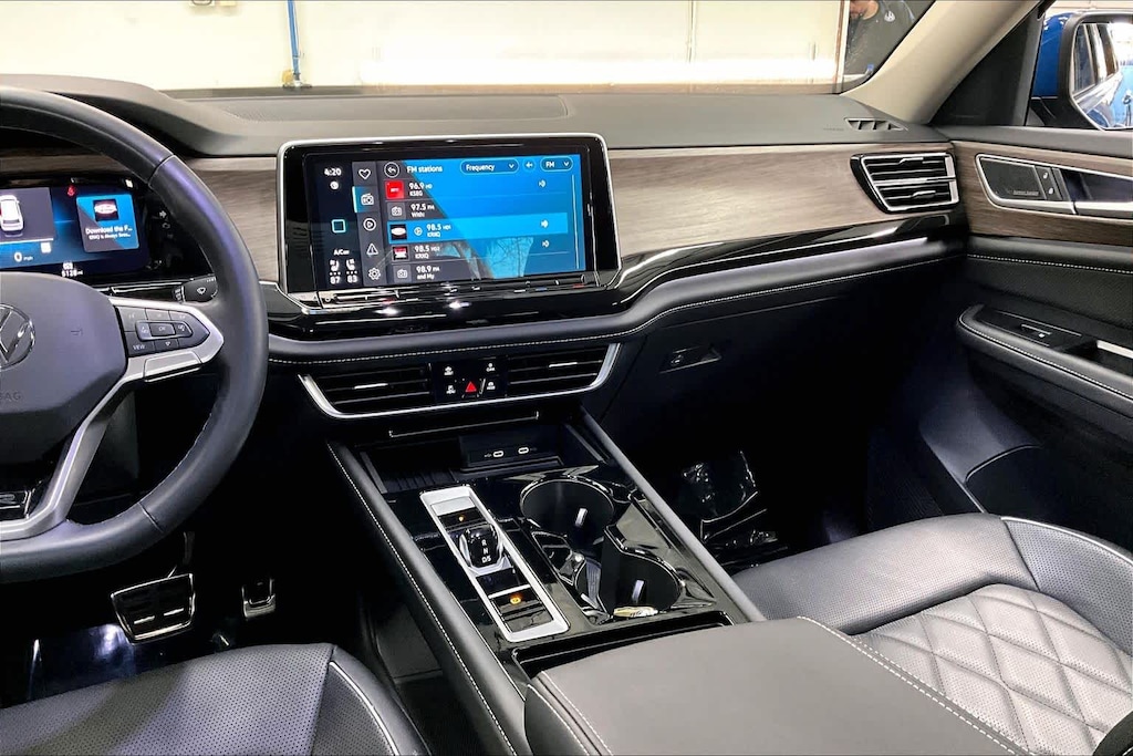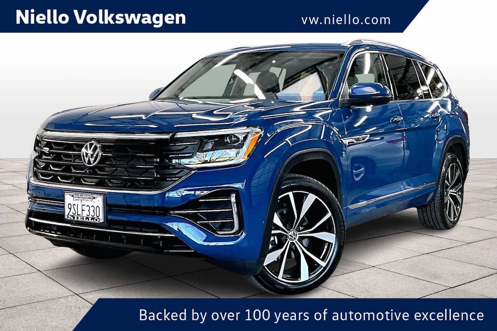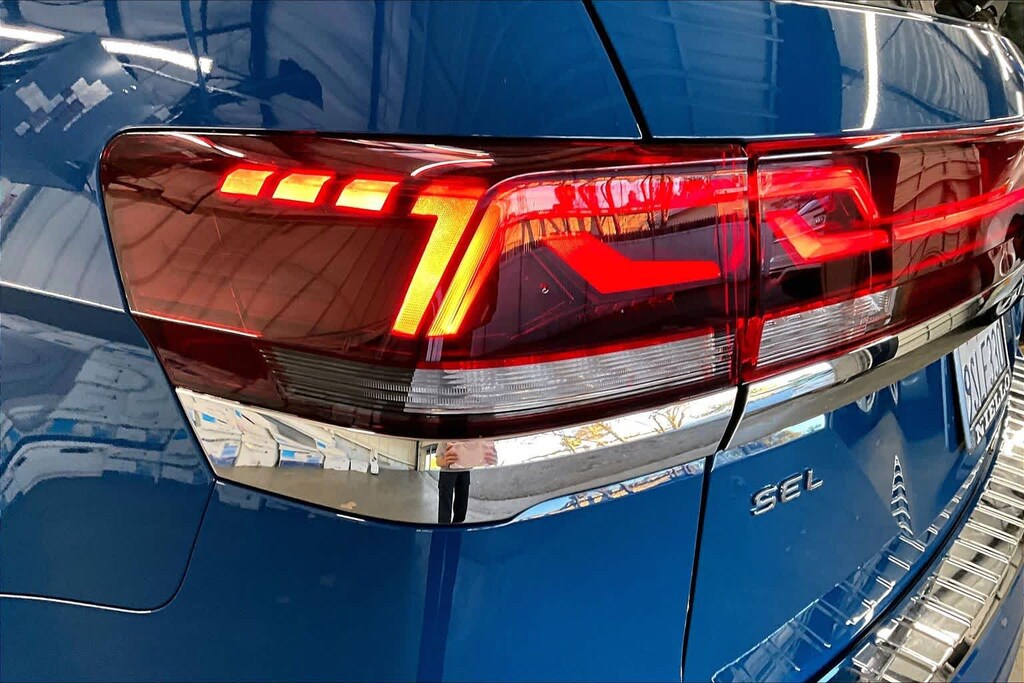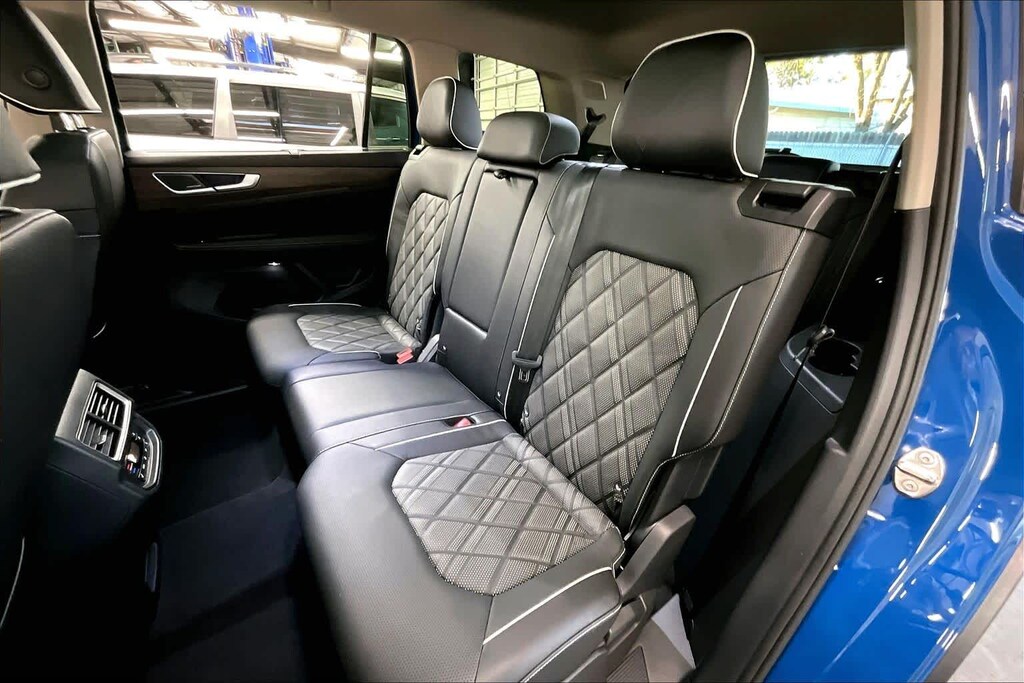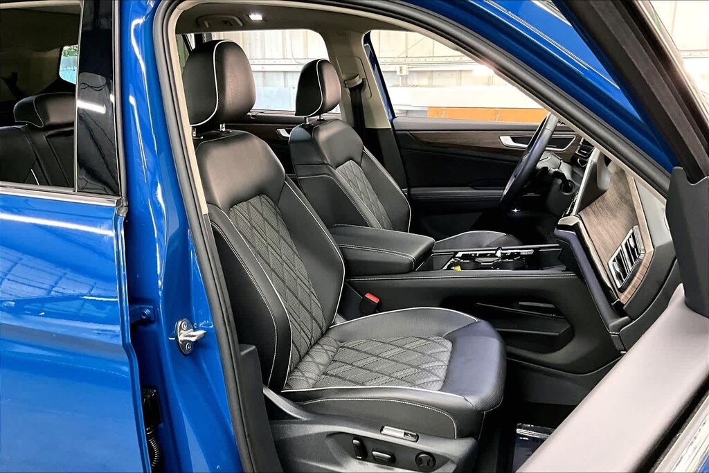 KEY FEATURES INCLUDE Leather Seats, Third Row Seat, Sunroof, Panoramic Roof, Power Liftgate Volkswagen 2.0T SEL Premium R-Line with Mountain Lake Blue Metallic exterior and Titan Black w/ Silver Underlay interior features a 4 Cylinder Engine with 269 HP at 5500 RPM*.