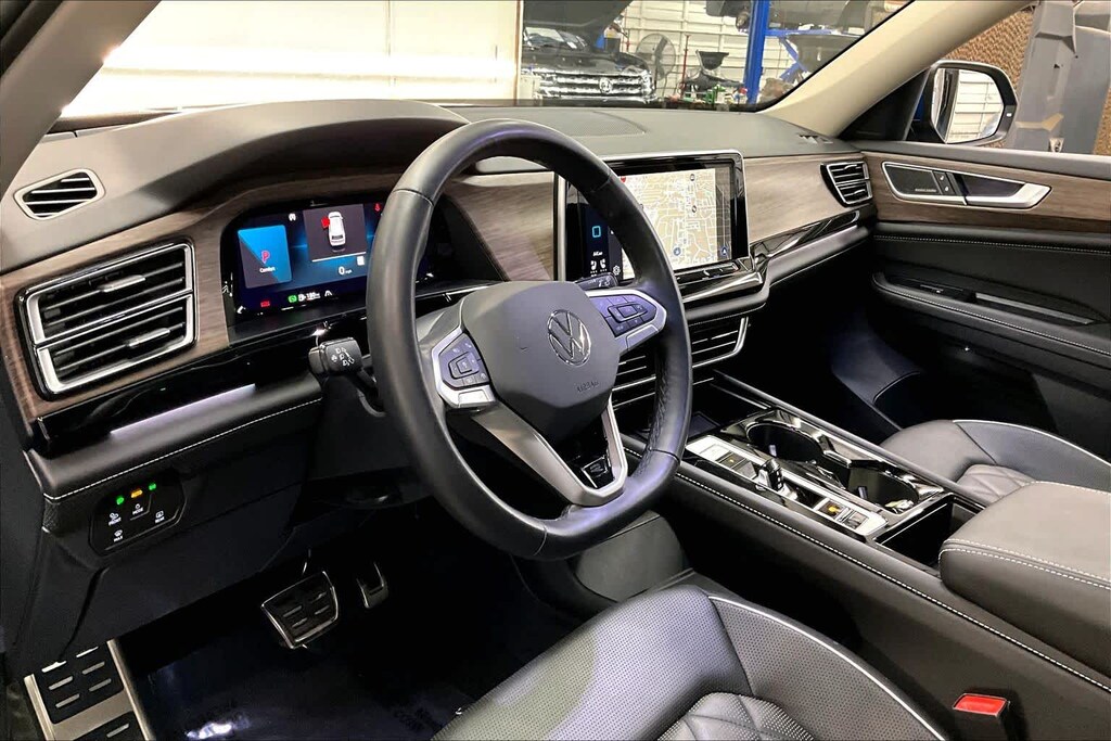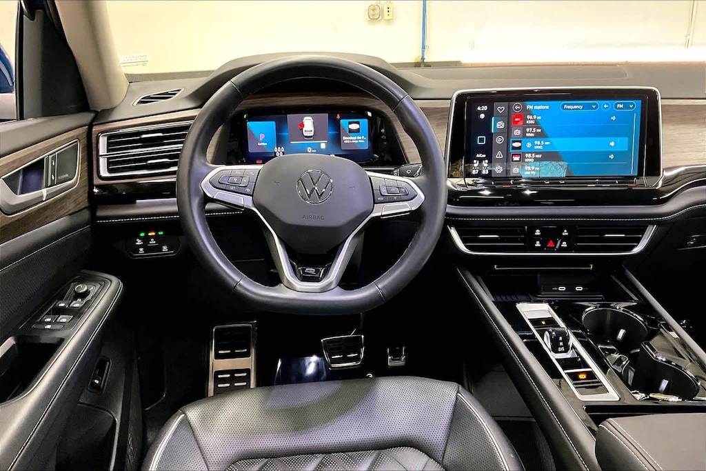 The Atlas has an infotainment system that is easy to use and intuitive, and it allows for swiping and pinch zooming. Apple Car Play is awesome! Surprisingly, some manufacturers have not integrated this feature at this time. The digital instrument panel has a very nice, modern look, and it offers 5 or 6 different views. One of the really cool things about the Atlas- you can display the nav map in the middle of the instrument panel. Additionally, you can make the map bigger and the gauges smaller, which allows you to see more map detail- a really nice option. The car even has an altimeter, which is really cool to me (I’m a pilot by trade). Not so much for my wife…