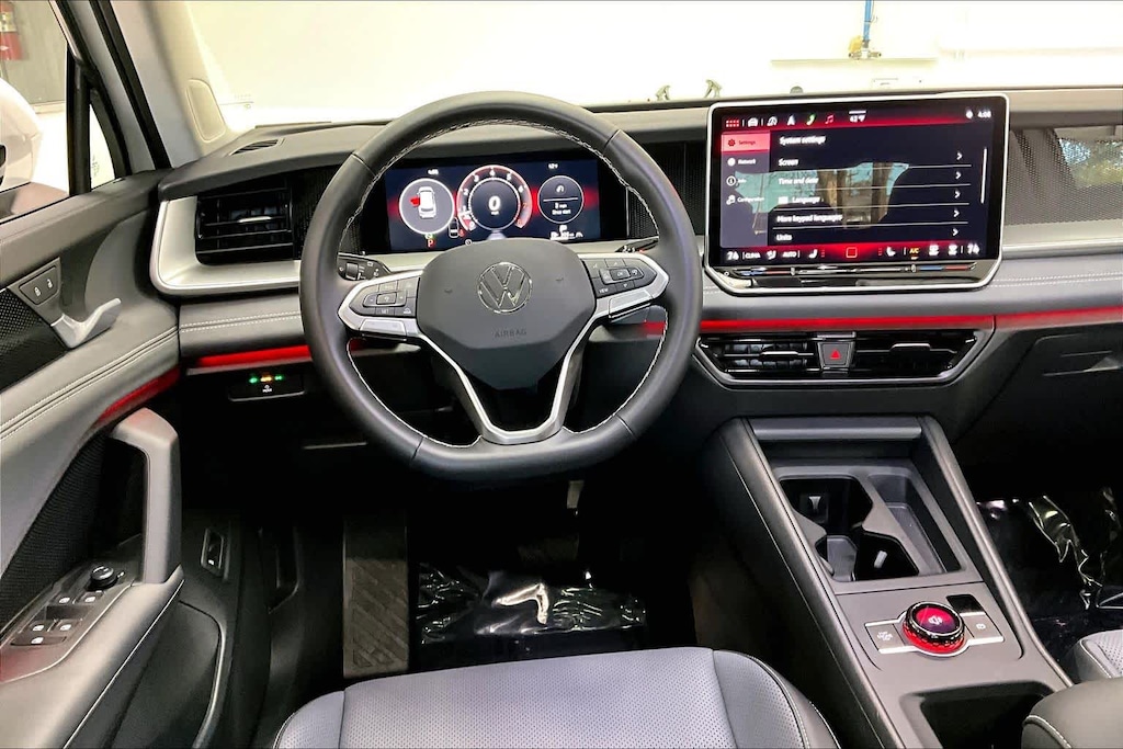 Panoramic Sunroof Package power tilting and sliding panoramic sunroof, Transmission W/Driver Selectable Mode And Oil Cooler, Radio: Mib4 Composition Media Touchscreen AM/FM -Inc: Wma/MP3/Flac Player w/USB, 12.9 Touchscreen Multi-Function Center Display W/Backlit Sliders, Voice Control, 6 Speakers + Center Speaker (7 Speakers Total) Sound System, Capability For In-Vehicle 4G Lte Enabled Wi-Fi (Cellular Data Plan Required; Includes Limited Trial), Capability For Vw Car-Net Services (Capabilities For Services Vary; Requires Enrollment Or Subscription), Bluetooth® Connectivity (For Compatible Devices), SiriusXM w/360L (W/3-Month Free Trial Subscription; 360L Services Require Acceptance Of Car-Net Terms), App-Connect Smartphone Integration (W/Apple CarPlay®, Android Auto® And Mirrorlink) Via USB, Wireless App-Connect Smartphone Integration (For Compatible Devices) W/Multi-Phone Pairing Capability, 45W Fast Charging, Engine Auto Stop-Start Feature, Transmission: 8-Speed Automatic -Inc: Driving Mode Selection And Eco Mode, Wheels: 19 2-Tone Machined Alloy, Back-Up Camera W/Washer, Lane Assist (Lane Keeping System) Lane Keeping Assist, Rear Traffic Alert, Front Assist (Forward Collision Warning And Autonomous Emergency Braking), Active Side Assist Blind Spot, Electronic Stability Control (Esc), Travel Assist (Semi-Automated Driving Assistance), Engine Oil Cooler, (Acc) Adaptive Cruise Control W/Stop & Go, Engine: 2.0L Tsi Dohc 16-Valve Turbo 4-Cylinder -Inc: Direct Fuel Injection And Engine Start-Stop System, Heated Front Seats -Inc: Power Adjustable Drivers Seat W/Power Lumbar Support And Manually Adjustable Front Passenger Seat W/Height Adjustment, Full-Time All-Wheel. Volkswagen SE with Pure White exterior and Grigio Gray/Titan Black interior features a 4 Cylinder Engine with 201 HP at 5000 Rpm*.